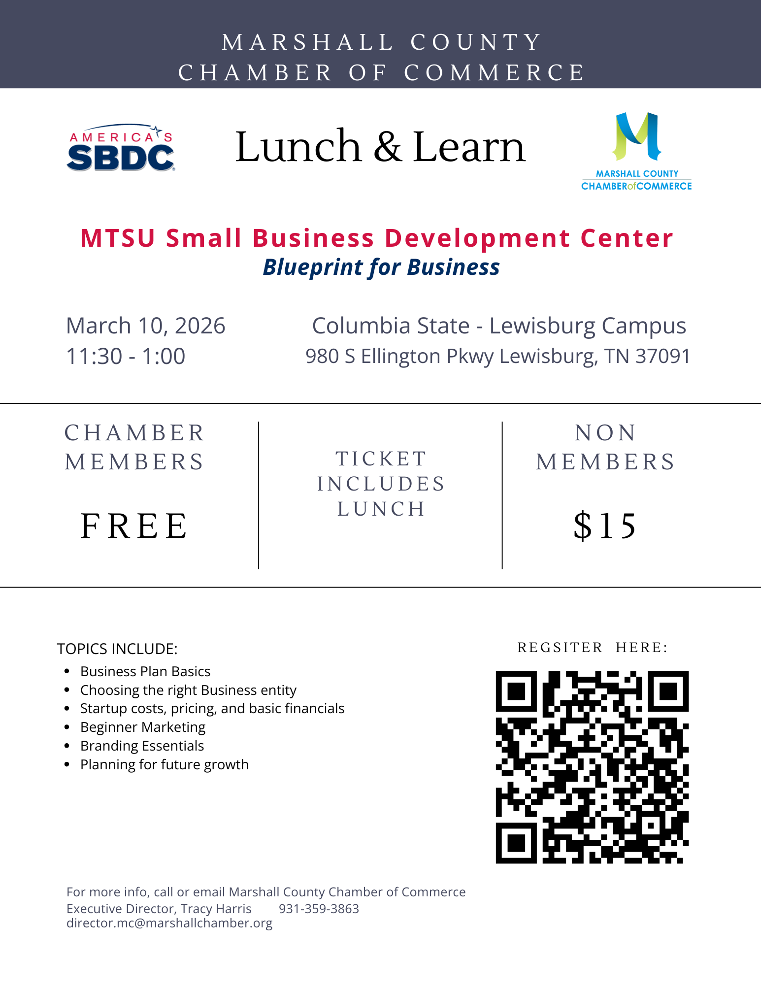 Get in touch with our team to learn more about how the Marshall County Chamber can help.